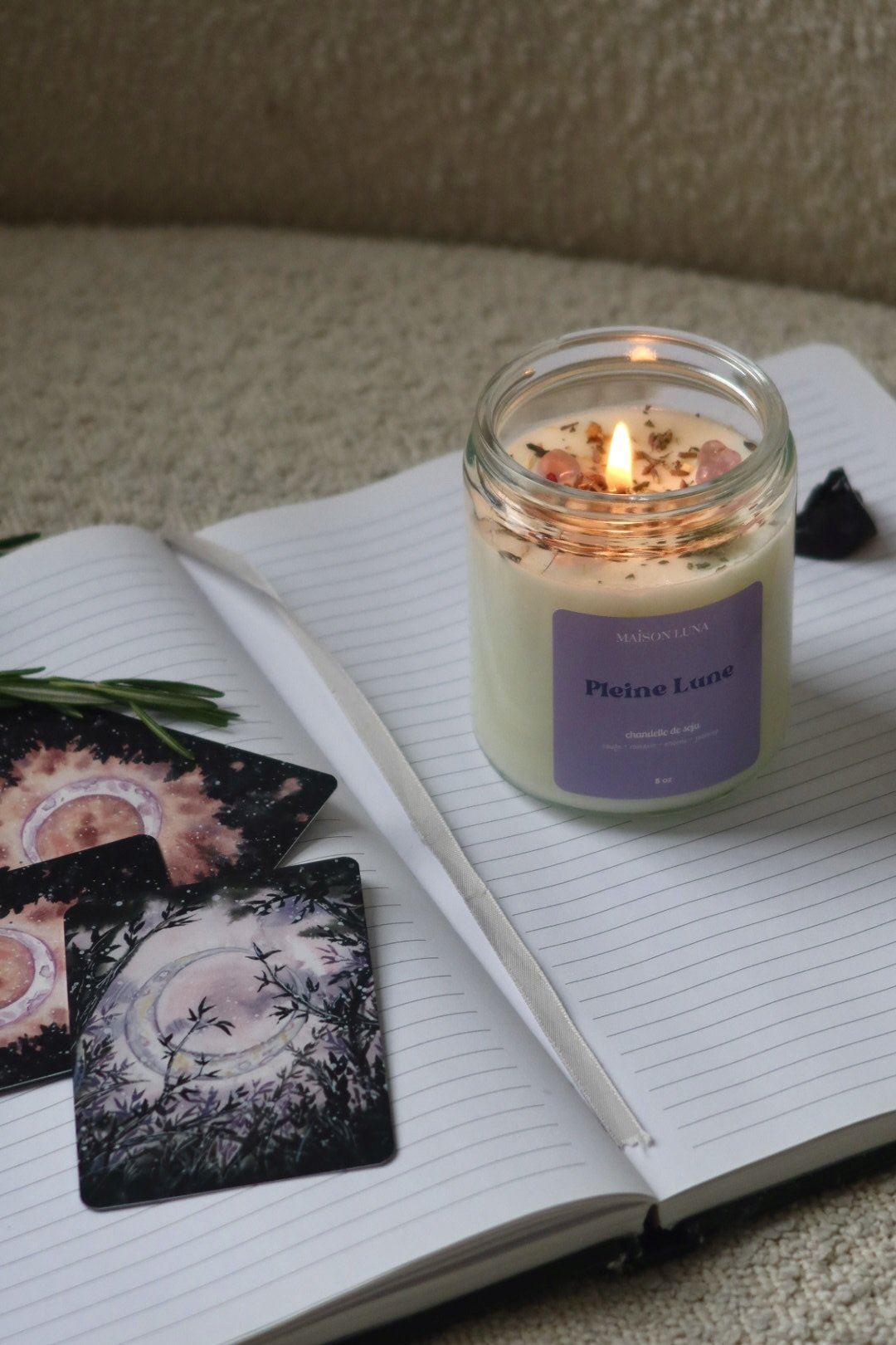 Ingrédients : cire de soja, améthyste, thé anti-stress